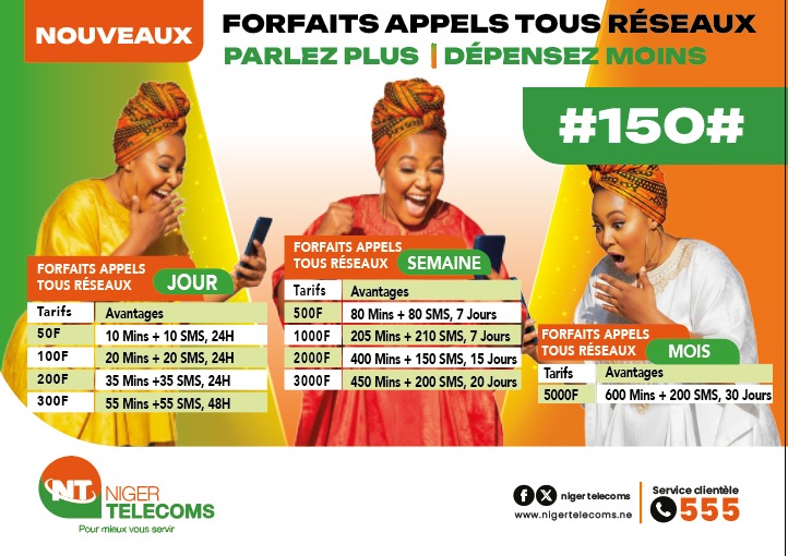 Parlez plus et dépensez moins. Ces nouveaux forfaits sont spécialement conçus pour vous afin de satisfaire vos différents besoin en communication. Allez y à votre rythme en forfait JOUR, forfait SEMAINE et forfait MOIS. En plus, un paquet de SMS avec ! Composez #150# et explorez-les.